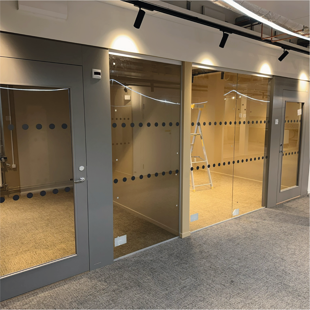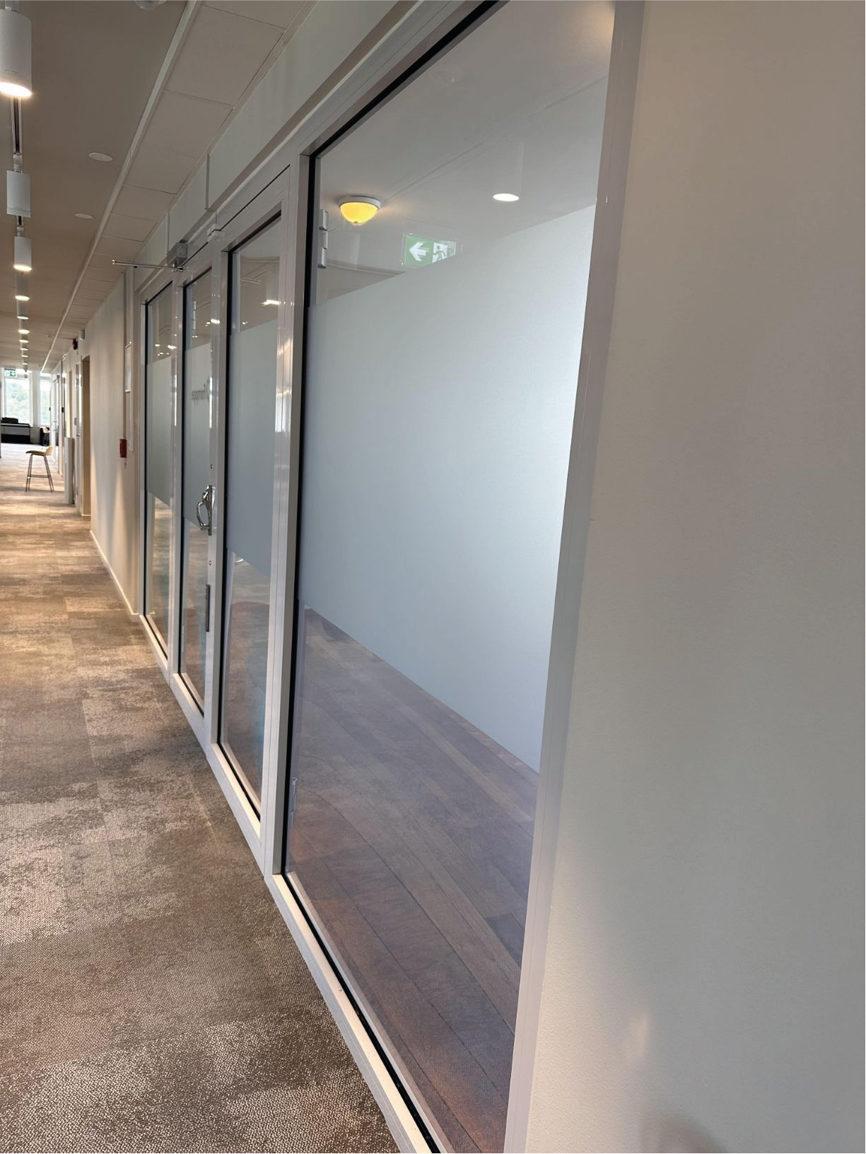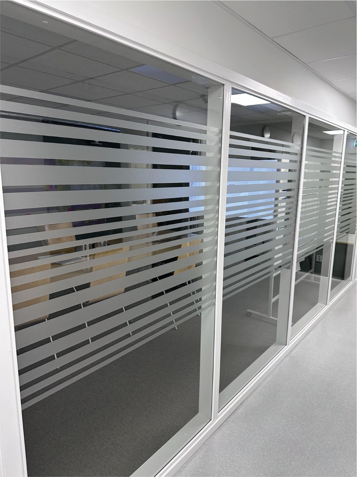 Mötesrum: Frostat glas förhindrar insyn och skapar en privat miljö för möten och diskussioner, samtidigt som dagsljuset bibehålls